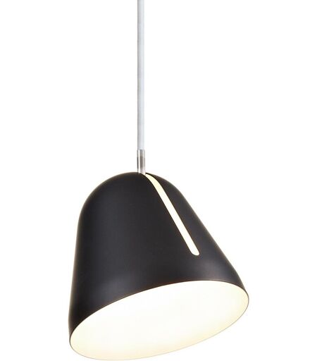 Bei der Nyta Tilt S Pendelleuchte hat sich das Designerteam jjoo design etwas ganz besonderes überlegt. Der Name ist hierbei Programm. Denn mühelos und intuitiv lässt sich der Schirm mit nur einem Handgriff und ohne Hilfsmittel entlang der langen Öffnung in alle Richtungen drehen und schwenken. So kann das Licht immer genau dort hingelenkt werden, wo es gerade benötigt wird. Die selbstfixierende Konstruktion sorgt für festen Halt und eine saubere Ausrichtung in jeder Position. Der deutsche Hersteller Nyta ist noch recht jung, aber Dank des ausgeklügeltem Designs der Tilt Serie bereits preisgekrönt. Der matt lackierte, Ø 18cm große Metallschirm der Nyta Tilt S Pendelleuchte ist in weiß, schwarz oder grau erhältlich, der mitgelieferte Baldachin ist farblich immer dem Leuchtenschirm angepasst. Besonders spannend sind die verschiedenfarbigen Textilkabel (schwarz, grau, weiß, rot, ... ...