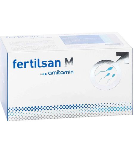 Bitte achten Sie auf eine abwechslungsreiche und ausgewogene Ernährung und gesunde Lebensweise.Ein Kinderwunsch wird heutzutage nicht jedem Paar erfüllt. Nach verschiedenen Untersuchungen kann man davon ausgehen, dass etwa jedes fünfte bis siebente Paar trotz Kinderwunsches dauerhaft nicht schwanger wird. Die Ursachen dafür liegen zu rund 40 % beim Mann allein und zu geschätzten 20 % an eingeschränkter Fruchtbarkeit beider Partner. fertilsan M kann durch seine speziellen hochdosierten Mikronährstoffe helfen, die wesentlichen Merkmale des Spermiogrammes (Anzahl von Spermien, Spermiendichte, Beweglichkeit und normale Gestalt (Morphologie) der Spermien) hin zu einem Normspermiogramm zu verbessern.fertilsan M von amitamin™ ist eine ergänzende bilanzierte Diät zur diätetischen Behandlung von Männern mit fehlernährungsbedingten Fertilitätsstörungen (diätetisches Lebensmittel für besondere medizinische Zwecke). Durch die ausgewogene und hochdosierte Kombination spezieller Mikronährstoffe kann fertilsan M dazu beitragen, die Qualität des männlichen Spermas und damit die Fruchtbarkeit von Männern mit fehlernährungsbedingter eingeschränkter Fruchtbarkeit zu verbessern.Eingeschränkte Fruchtbarkeit von Männern liegt vor bei:Oligozoospermie = zu wenige SpermienAsthenozoospermie = zu unbewegliche Spermien, undTeratozoospermie = verminderter Anteil morphologisch normaler Spermatozoen.Bestandteile von fertilsan Mfertilsan M enthält hochdosierte Vitamine, Spurenelemente, Aminosäuren und antioxidative Vitaminoide, die für den Entstehungsprozess von Spermien essenziell wichtig sind. L-ArgininL-Arginin ist eine semi-essenzielle Aminosäure, die unter anderem einen wichtigen Beitrag zum Immunsystem und zur Steuerung des Gefäßtonus leistet. Aus Arginin stellt der Körper Spermin und Spermidin her. Diese Substanzen kommen in hoher Konzentration in der Spermienflüssigkeit vor. Spermin hat auf die DNA der Spermien eine stabilisierende Wirkung.Spermidin hat wichtige Funktionen bei der Zellteilung und dem Zellwachstum und bestitzt antioxidative Eigenschaften.L-CarnitinL-Carnitin ist eine aminosäureähnliche Substanz, manchmal auch als Vitaminoid bezeichnet. L-Carnitin ist essentiell für den Energiehaushalt in den Zellen, denn nur mit L-Carnitin können Fettsäuren in das Zellinnere transportiert werden. Spermien benötigen besonders viel Energie, um sich vorwärts zu bewegen. L-Carnitin spielt eine wichtige Rolle in der Entstehung gesunder und beweglicher Spermien. Coenzym Q10Coenzym Q10 (Ubichinon) ist zentraler Bestandteil der energiegewinnenden Prozesse im Körper und daher besonders notwendig für den hohen Energiebedarf bei der Vorwärtsbewegung von Spermatozoen.N-Acetyl-L-CysteinN-Acetyl-L-Cystein ist der Vorgänger von Glutathion. Glutathion setzt sich aus den drei Aminosäuren L-Cystein, L-Glycin und Glutaminsäure zusammen. Glutathion ist als eines der stärksten natürlichen Antioxidantien bekannt. Mit Hilfe von Glutathion kann der Körper eigenes Vitamin C und Vitamin E wieder... ...