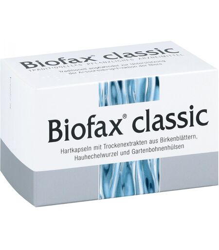 Bei unklaren oder andauernden Beschwerden, bei Schmerzen im Bereich der Nieren, bei Blut im Urin, bei akuten Harnverhalten und bei Beschwerden beim Wasserlassen sollten Sie unbedingt einen Arzt aufsuchen.Wirkungsweise von Biofax classicSind die Organe, insbesondere Herz- und Nieren, gesund, braucht unser Wasserhaushalt oftmals nur einen kleinen Anstoß, um wieder richtig funktionieren zu können. Für diese Fälle eignet sich Biofax classic als pflanzliche Entwässerungskur ideal. Durch seine 3Pflanzen-Formel aus Birkenblättern, Hauhechelwurzel und Gartenbohnenhülsen hilft Biofax classic unserem Körper sich selbst zu helfen und regt schonend und mild die Wasserausscheidung durch die Nieren an, ohne dabei wertvolle Elektrolyte auszuschwemmen. Und der praktische Nebeneffekt: Weniger Wasser bedeutet meist auch weniger Pfunde auf der Waage!
