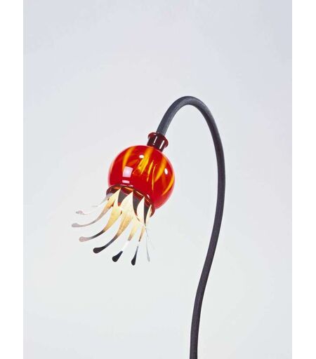 Wird die serien lighting Poppy Stehleuchte mit 1 Arm eingeschaltet, öffnen sich Ihre Schirme ähnlich einer Blüte. Dafür verantwortlich sind die feinen Blätter aus Bi-Metall, die sich durch Erwärmung des Leuchtmittels in eine vorgegebene Richtung ausdehnen. Nach ca. 2 Minuten entfaltet sich die ganze Pracht während sich die Schirme bei ausgeschaltetem Licht wieder in die ursprüngliche Position zurückziehen. Die Lampe erinnert auch in ihrer äußeren Erscheinung an eine Blume: Die serien lighting Poppy Stehleuchte hat - daher der Name - die Form einer Mohnblüte. Ihr Schirm besteht aus mundgeblasenem Glas, das in den Farben rot, keramik und schwarzviolett zu haben ist. Durchleuchtet erhält der kelchartige Schirm eine feine Transparenz.Die Arme der serien lighting Poppy Stehleuchte bestehen aus einem textilummantelten Flexschlauch (wahlweise in beige oder schwarz), der sich in die gewünschte R... ...