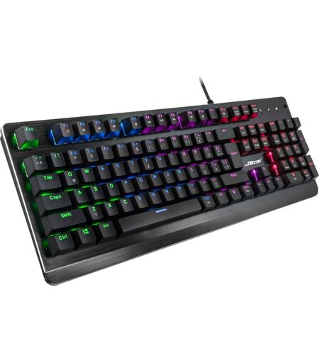 Die Inter-Tech NK-2000ME ist eine hochwertige, mechanische Gaming-Tastatur mit Klickschaltern des Herstellers Huano, die durch eine hohe Lebensdauer von über 20 Mio. Klicks überzeugen. Die Oberfläche der NK-2000ME besticht durch eine hochwertige Aluminium-Polierung und ist zudem leicht zu reinigen. Eine satte RGB-Beleuchtung unterhalb jeder freistehenden, halbtransparenten Taste, deren Farben und Effekte sich über eine integrierte Taste anpassen lassen, sorgt für den individuellen Stil. Mit 26-Key-Rollover, 11 Multimedia-Tasten sowie der Möglichkeit zur in-game Sperrung der Windows-Taste ist die NK-2000ME das ideale Werkzeug für jeden Gamer. ...