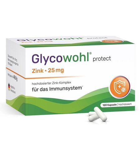 Anwendungsgebiet von Glycowohl Zink-Komplex 25 mg hochdosierte Kapseln veganGlycowohl Zink-Komplex 25 mg hochdosierte Kapseln vegan ist ein Nahrungsergänzungsmittel und beinhaltet 25 mg hochkonzentriertes Zink. Die 25 mg bestehen aus einer einzigartigen Mischung von drei verschiedenen Zinkverbindungen: Zinkbisglycinat, Zinkcitrat und Zinkpicolinat. Zink trägt zur Erhaltung normaler