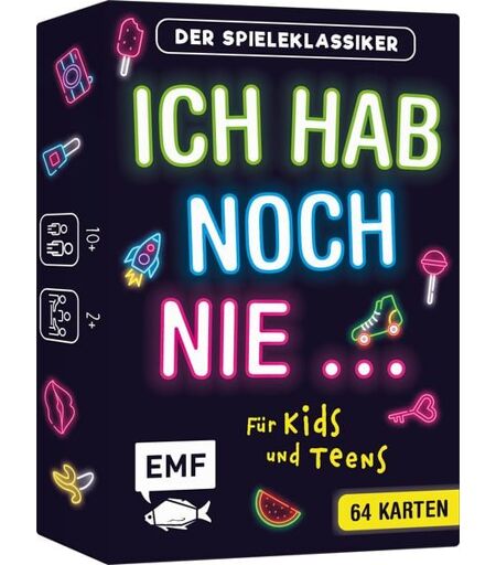 Ich hab noch nie … – der beliebte Spieleklassiker für Kids und Teens Ob unterwegs, zu Hause oder als spannendes Partyspiel – mit diesem Kartenspiel wird es garantiert nicht langweilig. Witzig, frech und manchmal auch ein bisschen gemein, sorgen über 60 altersgerechte Fragen garantiert für Spaß und Abwechslung auf Geburtstagspartys und Klassenfahrten . Das perfekte Spiel zum Kichern, Geheimnisse entdecken und besser Kennenlernen. Über 60 Karten mit abwechslungsreichen Fragen, ab 2 Personen Der Spieleklassiker – jetzt auch für Kids und Teens, ab 10 Jahren Praktisches Mitnahmeformat – perfekt für zu Hause und unterwegs Inhalt: Anleitung, 64 Karten Ich hab noch nie … – den beliebten Partyklassiker gibt es jetzt auch für Kids und Teens! Ich hab noch nie … meine BFF angelogen, einen fiesen Kommentar bei Instagram verfasst oder mich vor meinem Schwarm blamiert – altersgerechte Fragen in einer praktischen Kartenbox im Mitnahmeformat. Perfekt für zu Hause, unterwegs oder als Geschenk. ...