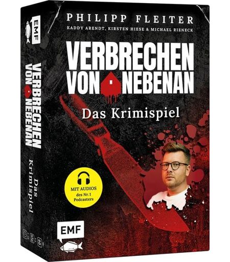 "Das Krimispiel zum Nr. 1-Podcast ""Verbrechen von nebenan"" von Philipp Fleiter In diesem kooperativen Rätselspiel erwartet euch der packende Fall des verschwundenen Jack-the-Ripper-Messers, der Philipp zum Verhängnis werden könnte! Besucht die Orte , die mit dem Fall zu tun haben, sammelt Hinweise sowie Beweise, überprüft die Alibis der Verdächtigen und kontrolliert eure Vermutungen auf der spielbegleitenden Website. Denkt ihr kreativ genug und zieht die richtigen Schlüsse, um Philipp rechtzeitig zu retten, oder folgt ihr der falschen Fährte und lasst ihn im Stich? Erst im multimedialen Finale werdet ihr sehen, ob ihr mit euren Schlussfolgerungen richtig liegt. Ein Fall für echte Ermittler*innen! Das kooperative Krimi-Rätselspiel zum Nr. 1-Podcast ""Verbrechen von nebenan"" von Philipp Fleiter Ein packender Fall mit kniffligen Rätseln und zahlreichen Beweismitteln Löst den Fall, der Philipp zum Verhängnis werden könnte, bevor es zu spät ist! Multimedialer Spielansatz mit interaktiver Website und Audiodateien von Philipp Fleiter Inhalt: Begleitheft, interaktive Website, 48 Karten und 4 Rätselumschläge mit zahlreichen Materialien wie Tatortbilder, Verdächtigenfotos, Zeitungsartikel und mehr Für 1 bis 5 Spieler*innen Ab 16 Jahren Spieldauer: 1–2 Stunden Haltet dem Nervenkitzel stand und bewahrt die Nerven bei diesem spannenden Krimispiel zum Nr. 1-Podcast ""Verbrechen von nebenan"" von Philipp Fleiter! " ...