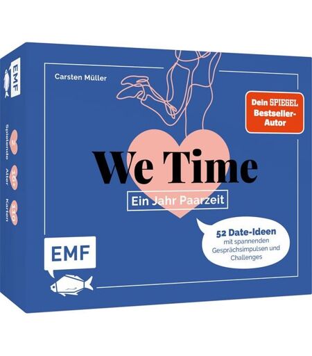 We Time: Ein Jahr Date-Ideen und Gesprächsimpulse! Was machen wir heute, Schatz? Dieses Spiel nimmt euch die Entscheidung ab und liefert besondere Date-Ideen für das ganze Jahr! Der erfahrene Paar- und Sexualtherapeut Carsten Müller hat für den Beziehungsalltag ein weiteres Kartenspiel entwickelt, das Date-Ideen sowie Gesprächsimpulse und Challenges beinhaltet und so Abwechslung und Überraschungen für Paare bereithält. Ob zum Jahrestag , zu Weihnachten , zum Valentinstag oder einfach zwischendurch – schenkt euch mehr Paarzeit! Für ein besonderes Date müsst ihr nicht mal selbst kreativ werden: Zieht einfach eine Date-Karte und eine Challenge-Karte und setzt beide um. 52 kreative Date-Ideen für das ganze Jahr Für 2 Personen ab 16 Jahren Für Frischverliebte, Langvermählte und alle dazwischen, unabhängig von Geschlecht, Alter & Beziehungsdauer Vom erfahrenen Paar- und Sexualtherapeuten und SPIEGEL-Bestsellerautor Carsten Müller entwickelt Praktische Box für zu Hause oder unterwegs Inhalt: 110 Karten und Anleitung Entdeckt euch neu: Ihr denkt, ihr wisst schon alles über euch und eure*n Partner*in? Falsch gedacht! Lasst euch von den spannenden Challenges überraschen und macht eure Dates zu etwas ganz Besonderem. Genießt eure We-Time! ...