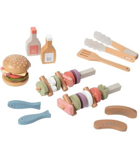 Jetzt wird gegrillt! Mit dem BBQ-Set Capsicum von Musterkind ist Dein Kind ab drei Jahren bereit für fantasievolle Rollenspiele. 33-tlgs. BBQ-Set Capsicum von Musterkind 2 Grillspieße, je 2 Scheiben Salami, Tomaten, Zwiebeln, Speck, Champignons, Gurke, 4 Würstchen, 1 Burger-Brötchen (geteilt), je 1 Scheibe Tomate, Speck, 1 Burgerpatty, 1 Scheibe Käse und ein Salatblatt aus Filz (Teile mit Klett verbindbar), 2 separate Würstchen und 2 Fische, 2 Grill-Soßen, 1 Grillzange, 1 Grillwender aus nachhaltig angebautem Holz, Filz ab 3 Jahren geeignet Mit dem BBQ-Set Capsicum von Musterkind wird Dein Mini im Spiel zum Grillmeister. Dein Kind kann zwei leckere Spieße zubereiten, einen Burger kreieren, Bratwürstchen oder Fisch brutzeln. Grillsaucen, eine Zange und ein Grillwender gestalten den Spielspaß möglichst authentisch. Mit jeder Menge Spaß trainiert Dein Kleines sein feinmotorisches Geschick und lernt in Rollenspiele, verschiedene Perspektiven einzunehmen. Cooles Detail: Die Einzelteile des Burgers lassen sich über Klett miteinander verbinden. Hinweis Die Dekoration ist nicht im Lieferumfang enthalten. ...