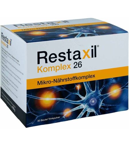 Anwendungsgebiet von Restaxil Komplex 26 PulverRestaxil Komplex 26 Pulver ist ein aufwendig entwickeltes Nahrungsergänzungsmittel, das spezielle Mikro-Nährstoffe für gesunde Nerven enthält.