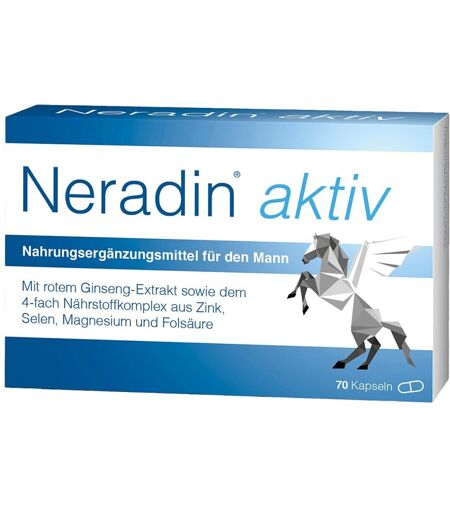 Bei der Zusammensetzung von Neradin Aktiv Kapseln wurden ausgewählte Nährstoffe verwendet, welche unter anderem wichtige Funktionen in der Sexualfunktion des Mannes unterstützen. Neradin Aktiv Kapseln aktiv beinhaltet einen hochwertigen Extrakt aus rotem Ginseng, dieser zählt in der traditionellen Pflanzenlehre als Adaptogen und gilt als Stärkungsmittel. Mit dem 4-fach Nährstoffkomplex aus Zink, Selen, Magnesium und Folsäure wurde Neradin Aktiv Kapseln aktiv besonders für eine gesunde Sexualität des Mannes konzipiert.