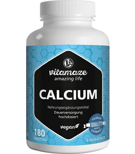 Anwendungsgebiet von Vitamaze CALCIUM 400 mg veganVitamaze CALCIUM 400 mg vegan ist ein Nahrungsergänzungsmittel mit Calcium. Calcium ist bekannt als das Knochenmineral, das wir brauchen, um unsere Knochen und Zähne gesund zu erhalten. Doch Calcium kann noch viel mehr: Wir benötigen es z. B. auch für unsere Muskelfunktion und die Zellteilung. Vitamaze CALCIUM 400 mg vegan versorgt Sie bereits mit 2 Tabletten täglich mit 100 % des Tagesbedarfs an Calcium.