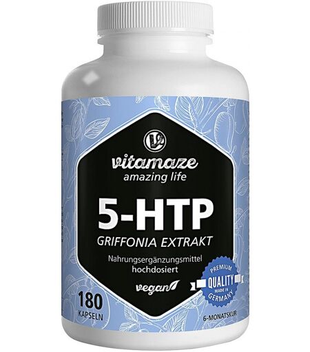 Anwendungsgebiet von 5-HTP 200 mg Griffonia Extrakt hochdos.vegan Kapsel (n)5-HTP 200 mg Griffonia Extrakt hochdos.vegan Kapsel (n) sind ein Nahrungsergänzungsmittel und vegane Kapseln mit dem Extrakt der Griffonia Pflanze "Griffonia simplicifolia" (Samen der Schwarzbohne), 200 mg reines 5-HTP (5-Hydroxy-Tryptophan) – und das in gewohnter Vitamaze-Qualität.Wirkstoffe / Inhaltsstoffe / ZutatenZutaten von 5-HTP 200 mg Griffonia Extrakt hochdos.vegan Kapsel (n):