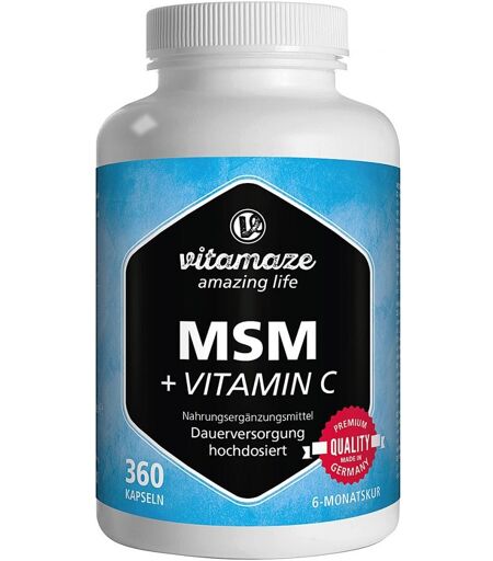 Anwendungsgebiet von Vitamaze MSM HOCHDOSIERT+Vitamin CMSM, auch Methylsulfonylmethan, Schwefelkapseln bzw. Dimethylsulfon genannt, bezeichnet eine organische Schwefelverbindung, die einen natürlicher Bestandteil der menschlichen Ernährung darstellt. In Vitamaze MSM HOCHDOSIERT+Vitamin C ist diese organische Schwefelquelle außerdem clever mit Vitamin C kombiniert.