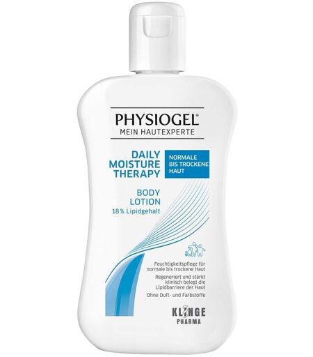 Die Physiogel Daily Moisture Therapy Body Lotion - normale bis trockene Haut ist die tägliche Feuchtigkeitspflegelotion für den ganzen Körper bei normaler bis trockener Haut. Die Body Lotion pflegt die Haut und macht sie weich und geschmeidig. Durch einen Wirkkomplex aus hautverwandten Lipiden spendet die PHYSIOGEL Daily Moisture Therapy Body Lotion Feuchtigkeit, regeneriert und repariert die Haut und schützt so vor wiederkehrender Trockenheit.