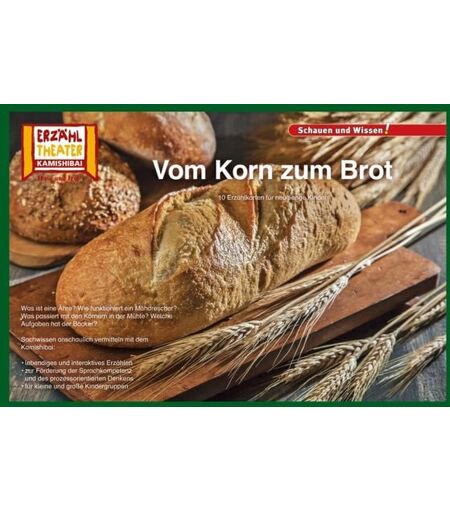 Das Brot gehört zu den wichtigsten Grundnahrungsmitteln. Doch woraus besteht es eigentlich und wie wird es gemacht? Mit den Fotobildkarten im DIN-A3-Format können die Kinder den Weg vom Saatkorn auf dem Acker bis zum fertigen Laib Schritt für Schritt entdecken. Sie erfahren, wie Getreide angebaut wird, lernen die Abläufe in einer Mühle kennen und schauen dem Bäcker bei der Arbeit zu. Mit dem Kamishibai können Sie Sachwissen anschaulich vermitteln und gleichzeitig die Sprachkompetenz der Kinder fördern. ...