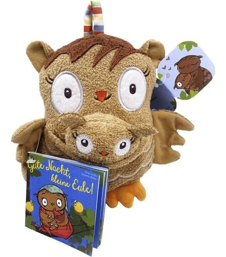 Gute Nacht, kleine Eule… mit diesem liebevollen Eulen-Duo ist nicht nur das Einschlafen gleich viel schöner. Mama Eule und die kleine Eule sind als kuschelige Begleiter sowohl im Bettchen als auch im Kinderwagen unterwegs dabei. In der praktischen Tasche von Mama Eule erlebt die kleine Eule Geborgenheit. Auch das Vorlese-Büchlein oder andere Lieblingsschätze finden hier Unterschlupf. Sollte das Einschlafen einmal etwas schwerer fallen, schafft das Mini-Vorlesebuch „Gute Nacht, kleine Eule!“ schnell Abhilfe und kann ganz einfach spielerisch nacherzählt werden. Eine tolle Geschenkidee auch zur Geburt oder zum Geburtstag. Mama Eule und kleine Eule als Plüschfiguren inkl. Vorlesegeschichte (Buchformat 7,5 x 7,5 cm, 16 Seiten). Mama Eule mit Kuschel-Tasche, Klettverschluss & Hängeschlaufe, Fingerpuppe ideal für Rollenspiele und als Begleiter zum Büchlein. Schönes Geschenk zu Geburt oder Geburtstag. ...