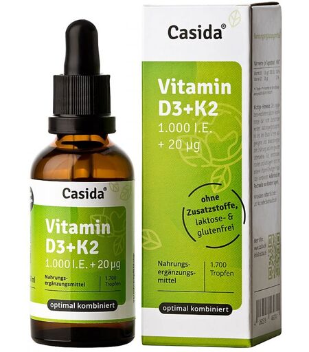 Anwendungsgebiet von Vitamin D3 K2 TropfenVitamin D3 K2 Tropfen sind ein Nahrungsergänzungsmittel, optimale Kombination von 1.000 I.E. Vitamin D3 und 20 μg Vitamin K2.Wirkstoffe / Inhaltsstoffe / ZutatenInhaltsstoffe von Vitamin D3 K2 Tropfen:Zutaten: Vitamin D3 (Cholecalciferol), Vitamin K2 (MK-7 All-Trans), Olivenöl, Mittelkettige