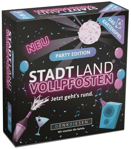 D&R Denkriesen GmbH DENKRIESEN - Stadt Land Vollpfosten® – Das Kartenspiel – PARTY EDITION Jetzt gehts rund.