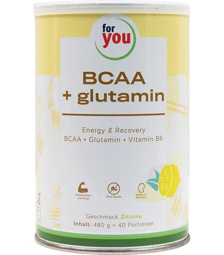 Anwendungsgebiet von For You BCAA + Glutamin Energy & Recovery ZitroneFor You BCAA + Glutamin Energy & Recovery Zitrone ist ein Nahrungsergänzungsmittel, Pulver mit verweigtkettigen Aminosäuren (BCAA), L-Glutamin und Vitamin B6. Mit Süßungsmittel.