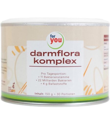 Anwendungsgebiet von For You darmflora komplex PulverFor You darmflora komplex Pulver ist ein geschmacksneutrales Pulver mit löslichen pflanzlichen Ballaststoffen, Lactobacillen und Bifidobakterien.