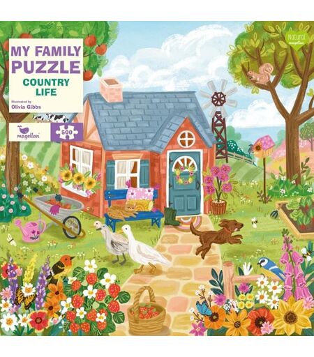 Ein wunderschönes Natur-Puzzle für die ganze Familie Umringt von bunten Blumen, summenden Bienen und vielen anderen Tieren, lässt es sich in diesem Landhaus wunderbar entspannen. Wenn alle 500 Puzzleteile zusammengefügt sind, eröffnet sich dem Betrachter der Blick auf einen idyllischen Rückzugsort mit großem Garten, in dem es viele farbenprächtige Details zu entdecken gibt. Auf spielerische Weise trainiert das Puzzle Konzentration und Feinmotorik und bietet ein fröhliches Puzzlevergnügen für die ganze Familie. Achtung! Nicht für Kinder unter 3 Jahren geeignet! Enthält Kleinteile, die verschluckt werden können. Erstickungsgefahr! ...