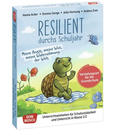 Standhaftigkeit fördern, Selbstwert stärken: für glückliche Grundschulkinder! Den richtigen Umgang mit Konflikten lernen, Wut und Angst annehmen, ohne sich überwältigen zu lassen: In diesem Bildkarten-Set sind vier Stundenentwürfe verpackt, die die kindliche Resilienz stärken. Denn die seelische Widerstandskraft ist unerlässlich für einen selbstsicheren und entspannten Gang durchs Leben. Wie beim Kartenset „Resilient durchs Schuljahr: Mein sicherer Ort, meine Gefühle, meine Sinne“; führt auch hier Schildkröte Resi als Identifikationsfigur durch die Resilienz-Übungen. Praktische Text- und Bildkarten für Grundschule, Hort und Förderschule Gewaltprävention an der Grundschule: Wut annehmen und bewusst steuern lernen Komplett-Set mit Zusatzmaterial als Download Selbstvertrauen bei Kindern stärken: resilient sein wie Schildkröte Resi Gezielt die Wahrnehmung fördern: Mit Atem-Übungen bei sich bleiben und Sicherheit gewinnen Resilienztraining erstellt von erfahrenen Pädagoginnen und einer Jugendsozialarbeiterin Im pädagogischen Alltag die Resilienz stärken: Vier Stundenentwürfe Die vier Lerneinheiten „Mit meiner Wahrnehmung der Welt zuwenden“; „Meine Wut – annehmen und bewusst steuern“; „Meine Angst – mit dem Atem beruhigen“ und „Für Umbruchsituationen offen sein“ sind für jeweils 90 Minuten konzipiert. Schritt für Schritt (und mit tatkräftiger Hilfe von Resi!) üben Kinder im Grundschulalter den bewussten Umgang mit ihren Emotionen. Wut und Angst zu verstehen und in Bahnen zu lenken, ist ein wichtiges Ziel der Resilienz-Übungen. Mit Standhaftigkeit schwierigen Situationen begegnen und das Selbstwertgefühl stärken: Das gelingt mit Hilfe des Resilienztrainings unter Anleitung von Resi! Don Bosco Verlag für Pädagogik Bildkarten, Kamishibai oder Fachbücher für Erzieherinnen und Pädagogen: Wir unterstützen Sie in Ihrer täglichen Arbeit mit kreativen Ideen, fundiertem Know-how und praxisnahen Produkten. Unser Qualitätsversprechen Die Materialien von Don Bosco Medien werden von erfahrenen Pädagoginnen und Pädagogen entwickelt und von unserem Fach-Lektorat umfassend geprüft. Unsere Produkte stehen für ganzheitliche Bildung und Erziehung, bei der das Kind immer im Mittelpunkt steht. ...