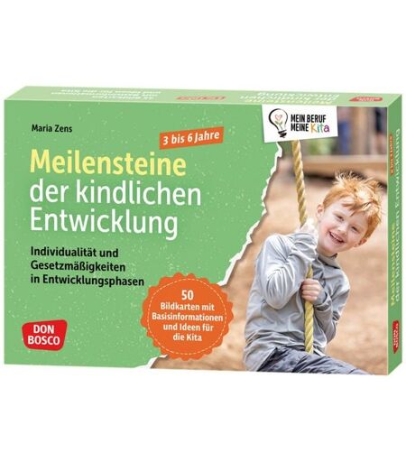 Die großen Entwicklungsaufgaben im Kindergarten: Das Wichtigste im Überblick Viele Meilensteine der Entwicklung fallen in die Kitazeit: Vom Kleinkind, das oft noch auf Hilfe angewiesen ist, schreitet die motorische und kognitive Entwicklung voran bis zur Schulfähigkeit. Welche Entwicklungsfaktoren sind entscheidend und wo stehen die Kinder wann? Dieses Bildkarten-Set bietet pädagogisches Basiswissen für die gesamte Kindergartenzeit: Ein Gewinn für alle, die mit Entwicklungsaufgaben im Kindergarten betraut sind, von Erzieher:innen in Ausbildung bis hin zum erfahrenen Kitapersonal. Kindern in ihrer Entfaltung gerecht werden: Pädagogisches Basiswissen zur Entwicklungspsychologie Kindergartenkinder individuell fördern und begleiten: Meilensteine der Entwicklung von 3 bis 6 Jahren Bildkarten-Set mit Begleitheft, Checklisten und Beobachtungsbögen Für die Aus- und Fortbildung von pädagogischen Fachkräften Zur individuellen Entwicklungsbegleitung eines jeden Kindes Übersichtlich und klar strukturiert: Die Entwicklung bei Kindern ab 3 Das Kartenset bietet eine leicht zugängliche Möglichkeit, sich in die Meilensteine der Entwicklung von Kindergartenkindern einzuarbeiten. So fällt es Erzieher:innen leichter, der individuellen Entwicklung gerecht zu werden und diese im pädagogischen Alltag zu fördern. Damit wird die Aussagekraft von Beobachtungsbögen um weitere Perspektiven ergänzt, die auch Elterngespräche bereichern. Mögliche Entwicklungsverzögerungen werden dank dieser soliden Wissensgrundlage leichter erkannt. Sprachentwicklung, motorische Entwicklung und sozial-emotionale Entwicklung können gut in den Blick genommen werden. Die Bildkarten helfen Erzieher:innen, die Kinder beim Wachsen so zu begleiten, wie es den Bedürfnissen der Kinder entspricht. Don Bosco Verlag für Pädagogik Bildkarten, Kamishibai oder Fachbücher für Erzieherinnen und Pädagogen: Wir unterstützen Sie in Ihrer täglichen Arbeit mit kreativen Ideen, fundiertem Know-how und praxisnahen Produkten. Unser Qualitätsversprechen Die Materialien von Don Bosco Medien werden von erfahrenen Pädagoginnen und Pädagogen entwickelt und von unserem Fach-Lektorat umfassend geprüft. Unsere Produkte stehen für ganzheitliche Bildung und Erziehung, bei der das Kind immer im Mittelpunkt steht. ...