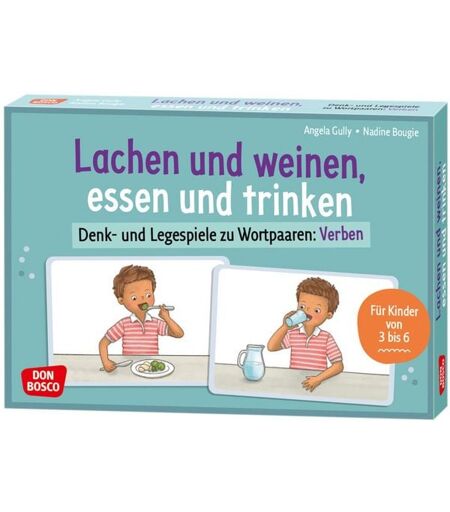 Was ist das Gegenteil von werfen? Ein Sprachspiel zu den wichtigsten Tunwörtern „Anziehen“ und „ausziehen“; „frieren“ und „schwitzen“: Dieses Legespiel behandelt Verben, die schon kleinen Kindern regelmäßig im Alltag begegnen. Auf 30 Karten versammelt das Set Gegensatzpaare oder einander ergänzende Tunwörter, die zum Grundwortschatz im Kindergartenalter gehören. Die liebevollen Illustrationen von Nadine Bougie laden dazu ein, über die gezeigten Szenen zu sprechen und das eigene Ausdrucksvermögen schrittweise zu verbessern. Geben und nehmen, suchen und finden: ein Spiel zur Sprachförderung Gegensätze prägen sich leichter ein: die wichtigsten Verben aus dem Kinderalltag Ein Zuordnungsspiel mit 30 Bildkarten, inklusive Begleitheft mit Spielideen und Hinweisen Mit Impulsfragen als Anregung für freies Sprechen und Erzählen Sofort einsatzbereit in Kita und Grundschule, als DaZ-Material oder in der Logopädie Duften und stinken, essen und trinken: Einprägsame Bildkarten zur Sprachförderung Das Set bietet Raum für zahlreiche Spielvarianten: Die Kinder können die Karten sortieren und vergleichen, die dargestellten Gegensätze versprachlichen oder die Szenen mit Pantomime-Spielen zum Leben erwecken. Das beiliegende Begleitheft liefert noch viele weitere Ideen für den Einsatz in Kitabereich, Förderunterricht oder als Logopädie-Material. Ein vielseitig verwendbares Denkspiel, das ohne Vorbereitungsaufwand auskommt und Kinder ab 3 Jahren zum Erzählen und zum gegenseitigen Austausch anregt. Don Bosco Verlag für Pädagogik Bildkarten, Kamishibai oder Fachbücher für Erzieherinnen und Pädagogen: Wir unterstützen Sie in Ihrer täglichen Arbeit mit kreativen Ideen, fundiertem Know-how und praxisnahen Produkten. Unser Qualitätsversprechen Die Materialien von Don Bosco Medien werden von erfahrenen Pädagoginnen und Pädagogen entwickelt und von unserem Fach-Lektorat umfassend geprüft. Unsere Produkte stehen für ganzheitliche Bildung und Erziehung, bei der das Kind immer im Mittelpunkt steht. ...