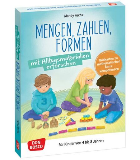 Im Spiel und mit Alltagsbeobachtungen die Grundlagen der Mathematik vermitteln Mathe ist überall um uns herum und Kinder forschen gern! Ihre natürliche Neugierde und ihre Freude am logischen Denken können Erzieher:innen und Lehrkräfte spielerisch fördern. Sie nehmen damit kein Schulwissen vorweg, sondern ermöglichen den Kindern, mit Alltagsmaterialien selbstbestimmt erste Mathe-Grundlagen zu entdecken. Mandy Fuchs hat dieses Kartenset auf Grundlage ihrer jahrelangen Erfahrung in der Erarbeitung mathematischer Lernkonzepte entwickelt – mit anregenden Forscherimpulsen und vielen methodischen Hinweisen für pädagogische Fachkräfte. Die Welt der Zahlen und Formen mit Alltagsmaterialien kennenlernen: 30 Bildkarten Geometrische Formen, Mengenlehre, erstes Zahlenverständnis: originelle mathematische Bildung für Kita- und Grundschulkinder Erste mathematische Begriffe entdecken mit Gummiringen, Zetteln, Wäscheklammern u.v.m. Basiskompetenzen leicht vermitteln mit gut durchdachter Mathe-Didaktik Spielerisch Mathe lernen mit Bildkarten: für Kindergarten, Vorschule, Grundschule und den Mathe-Förderunterricht Zahlen, Formen und Mathe-Rätsel sind überall – sie zu entdecken macht Spaß! Alltagsmaterialien verfügen über ein enormes mathematisches Potenzial: Wie viele Klammern gibt es in welcher Farbe in einem bunten Haufen Wäscheklammern? Welche geometrischen Muster kann man mit Flaschendeckeln legen? Und wie lang lässt sich ein Gummiring spannen? Diese und weitere Fragen auf den Bildkarten laden Kinder ein, grundlegende Vorläuferfähigkeiten zu erwerben: Zählen üben, geometrische Formen erkennen und Mengen vergleichen. Wenn Kinder Mathematik von Anfang an als spannende Entdeckungsreise erleben, entwickeln sie ein positives Verhältnis zu diesem Fach – eine wertvolle Grundlage für ihren gesamten Bildungsweg! Don Bosco Verlag für Pädagogik Bildkarten, Kamishibai oder Fachbücher für Erzieherinnen und Pädagogen: Wir unterstützen Sie in Ihrer täglichen Arbeit mit kreativen Ideen, fundiertem Know-how und praxisnahen Produkten. Unser Qualitätsversprechen Die Materialien von Don Bosco Medien werden von erfahrenen Pädagoginnen und Pädagogen entwickelt und von unserem Fach-Lektorat umfassend geprüft. Unsere Produkte stehen für ganzheitliche Bildung und Erziehung, bei der das Kind immer im Mittelpunkt steht. ...