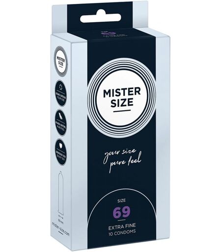 Anwendungsgebiet von Mister Size 69 KondomeWenn sich das Kondom nur mit größter Mühe abrollen lässt und einfach viel zu eng sitzt, kann Verhütung schnell zur Belastung werden. MISTER SIZE orientiert sich immer an deiner persönlichen Penis-Größe. Wenn das Kondom und dein bestes Stück perfekt zusammenpassen, fühlt sich der Sex endlich so an, wie er sein soll: unbeschwert, natürlich und intensiv.Wirkungsweise von Mister Size 69 KondomeDer Hauptbestandteil von MISTER SIZE Kondomen ist Latex.