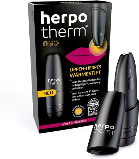 Anwendungsgebiet von Herpotherm NeoDas patentierte Medizinprodukt Herpotherm Neo dient zur örtlichen Behandlung begleitender Symptome von Herpes (Herpes simplex labialis) wie Schmerz, Brennen, Juckreiz, Kribbeln oder Spannungsgefühl. Mit rechtzeitiger Anwendung von Herpotherm Neo kann die Ausbildung von Herpesbläschen verhindert werden. Bei späterer Anwendung kann ein leichterer Verlauf oder ein früheres Abheilen erzielt werden.