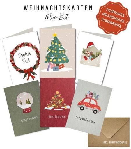 KEITCARDS Weihnachtskarten mixed Set, 3 x Postkarten und 3 x Klappkarten