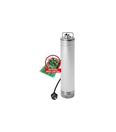 Ewuaqua Tauchdruckpumpe 12385mehrstufiges 4" Tauchdruckpumpensystem aus Edelstahl mit integrierter elektronischer SteuerungBauteile der Hydraulik aus glasfaserverstärktem PPEjede Pumpenstufe mit Edelstahlring verstärkteinphasiger Asynchronmotor 220 - 240 V bei 50 Hz im NetzKühlung des Motors durch gepumptes Medium und lebensmittelechtes Mineralölintegrierte elektronische Steuerung schaltet Pumpe druckabhängig ein (2,5 bar) und flussabhängig (< 1,5 l/min) ausschützt vor Trockenlaufautomatische Reset-FunktionAnti-Blockage-SystemIP68max. Eintauchtiefe 17 mmax. Anlagenhöhe 20 mFördermedium max. 35 °Cintegriertes RückschlagventilTragegriff am Kopf der Pumpe1" Druckstutzen mit Innengewinde und Abgang nach oben20 m Anschlusskabel mit SchutzkontaktFiltersieb am Pumpenfuß ...