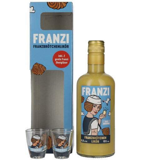 Franzi Likör Franzi Franzbrötchen Likör 15% Vol. 0,5l in Geschenkbox mit 2 Shotgläser