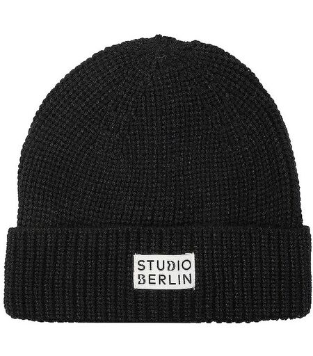 Damen Mütze aus hochwertigem Woll-Mix Rippstrick Unifarben Logopatch auf der Vorderseite Angenehmes Tragegefühl Farbbezeichnung: Black Material: 70% Polyacryl 30% Wolle ...