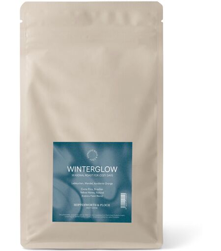 Hoppenworth & Ploch - Winterglow Espresso - 250 g Ganze Bohne Aufbewahrungshinweise: Trocken, dunkel und vor Wärme geschützt lagern. Zubereitungsempfehlung: Für unseren Winterglow Espresso empfehlen wir die Zubereitung in der Siebträgermaschine. Er eignet sich besonders gut als Espresso oder als Basis für ein Milchgetränk, wie Cappuccino oder Flat White. Das ist unser persönliches Brührezept: 1. Die Siebträgermaschine aufheizen und die Tasse mit heißem Wasser vorwärmen. 2. 18,5g Kaffeebohnen fein mahlen und in den Siebträger geben. 3. Das Kaffeemehl im Siebträger gleichmäßig verteilen. 4. Mit dem Tamper das Kaffeemehl gerade und fest nach unten drücken, bis die Oberfläche glatt und eben ist. 5. Kaffeereste vom Rand des Siebs abwischen und die Brühgruppe der Maschine kurz mit Wasser spülen. 6. Siebträger fest einspannen und die Tasse auf eine Waage unter den Auslauf stellen. 7. Den Bezug (Brühvorgang) starten und die Zeit stoppen. In 30 Sekunden sollten etwa 38g Espresso in die Tasse gelaufen sein. 8. Bezug beenden, Siebträger ausklopfen und spülen und den fertigen Espresso genießen! Geschmack > Geschmacksprofil: Lebkuchen, Mandel, kandierte Orange Spezialitätenkaffee von Rösterei Hoppenworth & Ploch aus FrankfurtGeschmacksprofil: Schokolade, Lebkuchen, süße FrüchteBlend aus 50 % Arabica aus Costa Rica, 50 % Arabica aus BrasilienAufbereitung: Yellow Honey (Costa Rica), Natural (Brasilien)Varietät: Caturra, Catuai, Bourbon (Costa Rica), Red Bourbon (Brasilien)Herkunft: Finca Cerro San Luis, Fazenda SertaoPerfekt als Weihnachtsgeschenk! ...