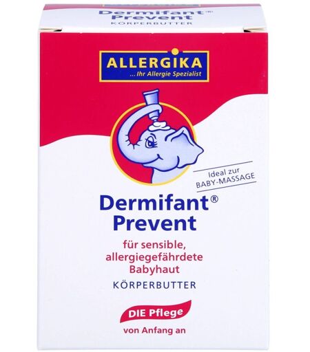 Anwendungsgebiet von Dermifant Prev KoerpbutterDermifant Prev Koerpbutter – Sanfte Pflege für empfindliche BabyhautDie Dermifant Prev Koerpbutter vereint drei hautidentische Lipide – Ceramid-3, Gamma-Linolensäure aus Nachtkerzenöl und Cholesterol – in einer einzigartigen, innovativen Formulierung. Diese Kombination stärkt gezielt die Hautbarriere und schützt zuverlässig vor Reizungen, Rötungen und Feuchtigkeitsverlust.Mit Sheabutter und Mandelöl angereichert, spendet die Körperbutter intensive Pflege und hinterlässt ein angenehm weiches Hautgefühl. Sie eignet sich ideal für die tägliche Babypflege sowie für entspannende Massagen.Ein besonderes Pflegeerlebnis bietet die Feuchtigkeits-Booster Anwendung: Wärmen Sie die Körperbutter im geschlossenen Beutel im Badewasser an und tragen Sie sie im Anschluss auf die noch warme, trockene Haut auf – für maximale Aufnahme und wohltuende Wirkung.Die Formulierung ist frei von Duft-, Farb- und Konservierungsstoffen, enthält keine Parabene, Silikone, Paraffine, Mikroplastik, Mineralöle oder natürliche Allergene. Auch die 328 häufigsten Kontaktallergene gemäß der Deutschen Kontaktallergie-Gruppe sind ausgeschlossen.Hergestellt in Deutschland und empfohlen von Dermatologen, Kinderärzten und Hebammen, ist die Dermifant Prev Koerpbutter die ideale Pflege für empfindliche Babyhaut – besonders im Rahmen der begleitenden Hauttherapie.Wirkstoffe / Inhaltsstoffe / ZutatenDermifant Prev Koerpbutter enthält:Aqua, Butyrospermum Parkii Butter, Glyceryl Stearate SE, Glycerin, Prunus Amygdalus Dulcis Oil, Triticum Vulgare Oil, Glyceryl Stearate Citrate, Glyceryl Stearate, Oenothera Biennis Oil, Caprylyl Glycol, p-Anisic Acid, Cholesterol, Tocopherol, Helianthus Annuus Seed Oil, Carbomer, Xanthan Gum, Sodium Hydroxide, Ceramid NP, Citric AcidGegenanzeigenBei bekannter Überempfindlichkeit gegenüber einem der oben genannten Inhaltsstoffe sollte das Produkt nicht angewendet werden.DosierungAnwendungsempfehlung v ...