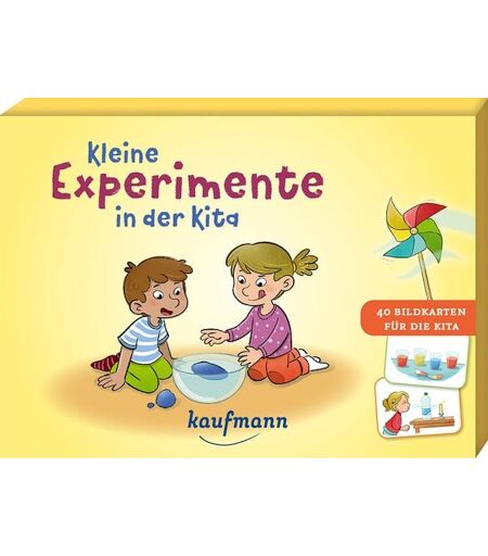"Experimentieren mit Kindern: Bildkarten zum Spielen und Lernen für und mit Kids Spannende Experimente und Forschungsstationen Experimente zum Staunen, Selbstversuche mit dem eigenen Körper, Forscherstationen im Freien auf 40 Bildkarten: Mit diesem Kartenset haben Sie einen kleinen Schatz an Ideen für naturwissenschaftliches Forschen zur Hand. Mit dabei sind auch immer schnell verständliche Erklärungen für alle Beobachtungen. Schöne Illustrationen bieten die Gelegenheit, die Kinder selbst aussuchen zu lassen, je nachdem was am besten gefällt. Mit bunten Illustrationen auf jeder Kartenvorderseite zum Selbst- und Mitaussuchen für Kinder von 2-5 Jahren. In diesem Bildkarten-Set finden ErzieherInnen, Tageseltern, PädagogInnen und Eltern viele verschieden Anregungen und Ideen für Experimente, Zaubertricks und Versuchsstationen in der Kita. Auf den Vorderseiten der Bildkarten wird ein passendes kindgerechtes Bild abgebildet, auf den Rückseiten findet sich eine Beschreibung der jeweiligen Idee. Experimente zu Themen wie ""Luft, Wind & Druck"", ""Feuer & Wasser"", ""Licht, Farben, Schatten"", ""Experimente mit Lebensmitteln"" und vielen mehr laden zum Mitmachen ein. Für Neugier und Entdeckerfreude - Eine Box voller Bild-Text-Karten mit bunten Ideen für Kindergruppen Die Karten sind in praktischem Format in einer Box und damit schnell einsatzbereit und leicht zu integrieren." ...