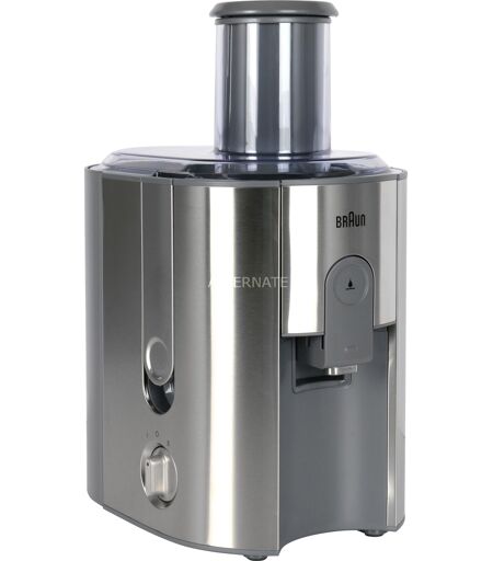 Der Hochleistungs-Entsafter J 700 aus der IdentityCollection von Braun sorgt schnell und ohne viel Arbeit für den morgendlichen Vitaminschub. Er spart das Vorschneiden, denn es passen große Stücke oder sogar ganze Früchte durch den großen Einfüllschacht in den Entsafter. In nur 15 Sekunden ist ein erfrischendes, gesundes Glas Fruchtsaft fertig. Die perfekte Kombination aus Schaumtrenner und feinmaschigem Edelstahlsieb hält Schaum und Fruchtfleisch zurück, damit ausschließlich reiner Saft ins Glas kommt. Dank dem leistungsstarken Motor und dem automatischen Einfüllsystem geht das Entsaften nicht nur schnell von der Hand, sondern ist auch noch praktisch und effizient. Das innovative Anti-Tropf-System sorgt für eine saubere Küche, indem man einfach auf die Tropf-Stopp-Taste drückt, um ein Überlaufen zu vermeiden. Der Saftauslauf geht wahlweise entweder direkt ins Glas oder in den Krug. Zur Sicherheit kann der Entsafter J 700 nur eingeschaltet werden, wenn die Saftauffangschale eingesetzt und der Deckel sicher mit den Verschlussbügeln verriegelt ist. Werden die Verschlussbügel gelöst, während der Motor noch läuft, stoppt der Motor innerhalb von 3 Sekunden. Alle Teile, die mit Lebensmitteln in Berührung kommen, sind BPA-frei. ...