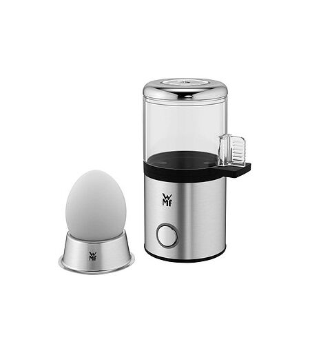 Immer optimale Frühstückseier: WMF KÜCHENminis My Egg EierkocherKein Sonntag ohne perfektes Ei und kein Frühstück ohne den WMF KÜCHENminis My Egg Eierkocher. Egal ob hart oder weich, mit diesem Gerät wird definitiv jedes Ei genauso, wie Sie es sich wünschen.So viel Kapazität steht Ihnen zur VerfügungUm genau einschätzen zu können, ob das Modell für Ihren Einsatzzweck geeignet ist, werfen Sie hier einen Blick auf seine Kapazität: 1 Ei. Die Stromversorgung verläuft über die Steckdose und ist somit völlig unkompliziert. Mit 55 W weist das Exemplar ausreichend Power auf.Interessantes auf einen BlickDiese nützliche Eigenschaft wartet auf Sie: Härtegradeinstellung.Wie groß ist das Produkt?Mit den nachfolgenden Abmessungen können Sie feststellen, ob der WMF Eierkocher KÜCHENminis My Egg für Sie passt: Tiefe: 5,0 cmHöhe: 11,8 cmBreite: 6,9 cmWeil es aus Cromargan® Edelstahl hergestellt ist, besitzt das Utensil alle Vorteile dieses Materials, so beispielsweise eine hohe Langlebigkeit, Strapazierfähigkeit und leichte Reinigung.Sie möchten sich den Alltag leichter machen?Dann bestellen Sie den WMF KÜCHENminis My Egg Eierkocher hier bei uns online und Sie erhalten die Lieferung inklusive Eierbecher, Messbecher mit Eipick. ...