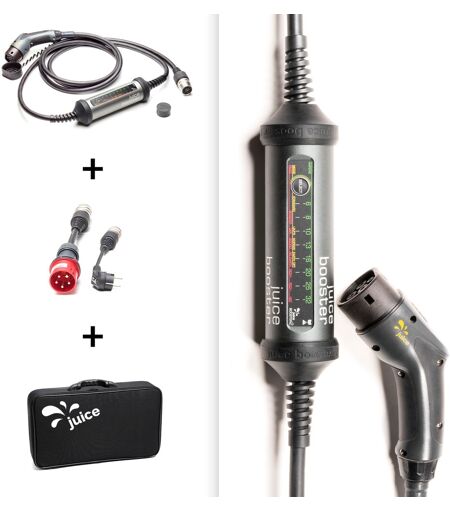 Der JUICE BOOSTER 2 ist die mobile Wallbox für überall! Mit ihr nimmt man die Wallbox einfach mit. Mit dem JUICE BOOSTER 2 ist das Laden des Fahrzeugs so einfach wie das Laden eines Smartphones. Wo es Strom gibt, kann man laden. Reichweitensorgen gibt es nicht mehr. Mit dem JUICE BOOSTER 2 lädt man unabhängig vom Stromanschluss immer schnellstmöglich, automatisch richtig und maximal sicher. Durch die 3-in-1-Funktion kann der JUICE BOOSTER 2 nicht nur als mobile Ladestation (ICCPD), sondern auch als Wallbox (mit optionaler Wandhalterung) oder Typ-2-Kabel (mit optionalem Typ-2-Adapter) genutzt werden. Dank der umfassenden Adapterauswahl für alle üblichen Haushalt-, Industrie- und EV-Steckdosen lädt man im In- sowie im Ausland. Durch die automatische Adaptererkennung wird die Stromstärke intelligent reguliert. Mühsames Errechnen oder manuelles Umstellen der Stromstärke fällt weg. Über den Select-Knopf am JUICE BOOSTER 2 kann diese auf Wunsch trotzdem noch manuell minimiert werden. Im Lieferumfang des German Basic Sets befinden sich zwei verschiedene Adapter [CEE32 3-phasig (Global), CEE 7/7 (EU) / Schutzkontakt (DE)]. ...