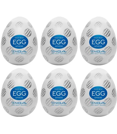 Kompakter Einmal-Masturbator Egg Sphere von TENGA mit spannender Rillenkugel-Reizstruktur im Inneren. Die ultra flexible Masturbator-Sleeve befindet sich in der eiförmigen Hülle und wird zusammen beim Handjob mit dem beiliegenden Gleitgel verwendet. 6 Stück. Gesamtlänge 7 cm (stark dehnbar) - passt für alle Penisgrößen. TPE, PP. ...
