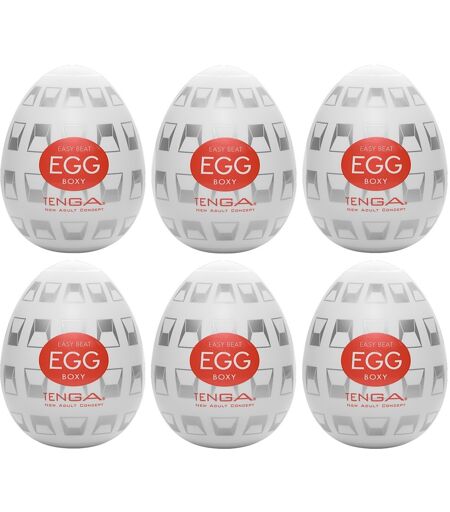 Kompakter Einmal-Masturbator Egg Boxy von TENGA mit spannender, vielseitig gestufter Reizstruktur im Inneren. Die ultra flexible Masturbator-Sleeve befindet sich in der eiförmigen Hülle und wird zusammen beim Handjob mit dem beiliegenden Gleitgel verwendet. 6 Stück. Gesamtlänge 7 cm (stark dehnbar) - passt für alle Penisgrößen. TPE, PP. ...