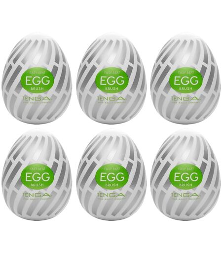 Kompakter Einmal-Masturbator Egg Brush von TENGA mit spannender Softborsten-Reizstruktur im Inneren. Die ultra flexible Masturbator-Sleeve befindet sich in der eiförmigen Hülle und wird zusammen beim Handjob mit dem beiliegenden Gleitgel verwendet. 6 Stück. Gesamtlänge 7 cm (stark dehnbar) - passt für alle Penisgrößen. TPE, PP. ...