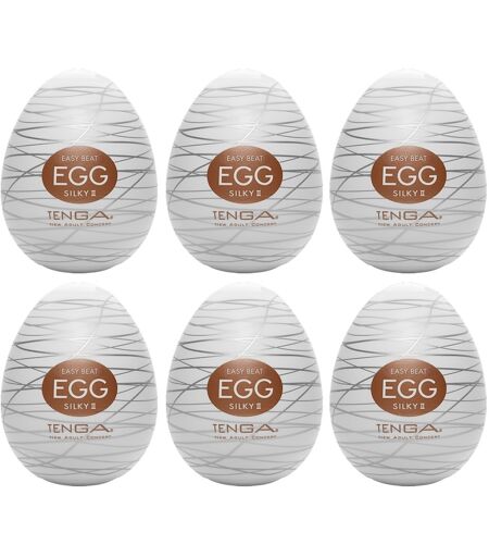 Kompakter Einmal-Masturbator Egg Silky II von TENGA mit spannender, neu überarbeiteter Rillenfaden-Reizstruktur im Inneren. Die ultra flexible Masturbator-Sleeve befindet sich in der eiförmigen Hülle und wird zusammen beim Handjob mit dem beiliegenden Gleitgel verwendet. 6 Stück. Gesamtlänge 7 cm (stark dehnbar) - passt für alle Penisgrößen. TPE, PP. ...