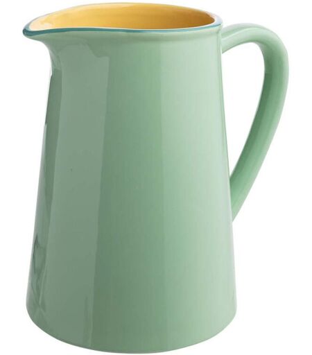 Dieser vielseitige Krug von tranquillo verzaubert mit Stil und Funktionalität! Ob für erfrischende Getränke oder als Vase für stilvolle Blumenarrangements, er überzeugt durch sein modernes Design und kräftiger Farbe. Das harmonische Farbspiel und die großzügige Form machen ihn zum Blickfang auf jedem Tisch. Der Krug aus robustem Steingut ist für Mikrowelle und Spülmaschine geeignet und hat ein Fassungsvermögen von 1,5 l. H 20 cm. ...
