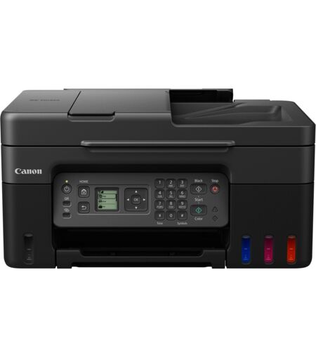 Kompakte Bauweise, hocheffizienter Druck, 4-in-1-Funktionalität: Der PIXMA G4570 von Canon ist ein kostengünstiger Multifunktions-Drucker für den Alltagsgebrauch, der mit nachfüllbaren Tintentanks arbeitet. Durch diese Bauweise bleiben die Druckkosten niedrig. Im Lieferumfang ist bereits Tinte für tausende von Seiten enthalten. Dabei ist der G4570 ein leistungsfähiges Werkzeug für den Druck gestochen scharfer Dokumente und Fotos mit lebendigen Farben. Er unterstützt den Randlosdruck in vielen Formaten und kann per USB mit einem PC oder Notebook verbunden werden. Zusätzlich steht eine WLAN-Schnittstelle zur Verfügung, womit auch der Druck per App von Smartphones oder Tablets möglich wird. Neben der Druckeinheit sind ein Flachbett-Scanner mit Einzug an der Oberseite, eine Kopierfunktion und eine Fax-Schnittstelle integriert. ...