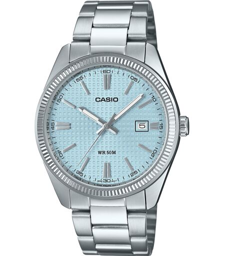 Die Casio Uhr ist ein elegantes Accessoire für den modernen Mann. Mit einer Gehäusegröße von 44.2 × 38.5 × 9.4 mm und einem Gewicht von 107 g ist sie angenehm zu tragen. Das Gehäuse und die Lünette sind aus ionenplattiertem Material gefertigt, während das Band aus Edelstahl mit einem dreifach gefalteten Verschluss besteht. Die Uhr ist bis zu 5 bar wasserdicht und verfügt über ein robustes Mineralglas. Diese Casio Uhr vereint Stil und Funktionalität perfekt und ist ein unverzichtbares Accessoire für jeden Anlass. Gehäusegröße (L x B x H): 44.2 × 38.5 × 9.4 mm Gewicht: 107 g Gehäuse- und Lünettenmaterial: Ionenplattiert Band: Edelstahl Dreifach gefalteter Verschluss Wasserbeständigkeit: Wasserdicht bis 5 bar Glas: Mineralglas Kompatible Bandgröße: 150 bis 205 mm Funktionen: Regelmäßige Zeiterfassung: Analog: 3 Zeiger (Stunden, Minuten, Sekunden) Datumsanzeige ...