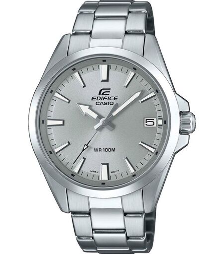 Die Casio Edifice Herrenuhr ist ein stilvolles Accessoire für jeden Anlass. Mit ihrem Edelstahlband und der Faltschließe überzeugt sie nicht nur durch ihr elegantes Design, sondern auch durch ihre hochwertige Verarbeitung. Das Edelstahlgehäuse mit einem Durchmesser von ca. 48 mm und einer Höhe von ca. 10,9 mm verleiht der Uhr eine robuste und dennoch schlanke Optik. Das Mineralglas schützt das graue Zifferblatt, das mit silberfarbenen Leuchtzeigern und Indizes versehen ist. Die Datumsanzeige sorgt dafür, dass du immer auf dem neuesten Stand bist. Mit einem Gewicht von nur ca. 125 g ist die Uhr angenehm zu tragen und dank ihrer Wasserdichtigkeit bis 10 bar auch für sportliche Aktivitäten geeignet. Die Casio Edifice Herrenuhr vereint Funktionalität mit Stil und ist das perfekte Accessoire für den modernen Mann von heute. ...