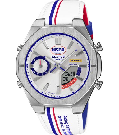 Diese besondere Casio EDIFICE Uhr ist mehr als ein Zeitmesser – sie verkörpert die Innovationskraft und den Rennsportgeist von NISMO seit 1984. Mit ihrem hochwertigen Edelstahlgehäuse und der präzisen Funktionalität begleitet dich diese Uhr zuverlässig im Alltag und bei deinen Abenteuern. Das limitierte Design macht sie zum perfekten Begleiter für alle Fans von Geschwindigkeit und Technik. Hol dir jetzt ein Stück Motorsportgeschichte ans Handgelenk und zeige deine Leidenschaft stilvoll und selbstbewusst. Gehäusegröße (L x B x H): 48 × 43 × 9.6 mm Gewicht: 69 g Gehäuse- und Lünettenmaterial: Edelstahl Band: Echtes Leder/Lederarmband Wasserbeständigkeit: Wasserdicht bis 10 bar Uhrzeiteinstellung: Bluetooth: Stellt eine Verbindung zu einem Smartphone her und passt die Uhrzeit automatisch an Smartphone Link-Funktion Mobile Link (Kabellose Verbindung über Bluetooth®) Apps: CASIO WATCHES App-Konnektivitätsfunktion: Automatische Zeiteinstellung, Einfache Einstellung der Uhr, Etwa 300 Weltzeitstädte, Zeit und Ort, Telefon-Finder ...
