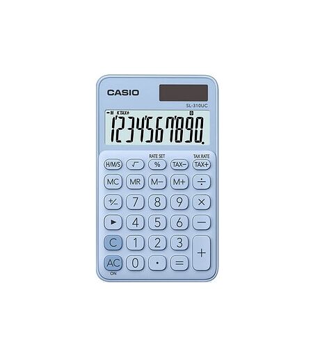 Der CASIO SL-310UC Taschenrechner hellblau liefert genaue BerechnungenKonzentrieren Sie sich auf die wichtigen Dinge und überlassen Sie das Rechnen dem CASIO SL-310UC Taschenrechner hellblau. Er erledigt alle täglichen Rechenoperationen im Büro.Was bringt die Prozenttaste?Die Prozenttaste dient dazu, Prozentsätze eines Wertes zu ermitteln oder zu einem Wert hinzuzufügen oder davon abzuziehen. Folgende Funktionen bietet der CASIO Taschenrechner SL-310UC außerdem: Steuerberechnung, Abschaltautomatik. Mit der Steuerberechnungsfunktion können Sie schnell die Mehrwertsteuer berechnen und die Differenz zwischen Brutto- und Nettobetrag feststellen. Solar- und batteriebetriebenDas Gerät wird sowohl über Batterie als auch über eine Solarzelle mit Strom versorgt und wird dadurch zum besonders zuverlässigen Rechengerät. Dank der Abschaltautomatik wird Energie gespart, indem sich der Artikel nach einer Weile der Nichtbenutzung ausschaltet.Optimale SichtBei diesem Gerät sticht zunächst das 10-stellige LCD-Display ins Auge. Hier können Sie die Rechenergebnisse schnell und bequem ablesen. Mit dem 4-Tasten-Speicher können Sie häufig verwendete Zahlenwerte bequem abrufen und in Ihre Berechnungen einfügen.Nutzen Sie die Vorteile dieses Artikels1 Knopfzelle LR54, Schutztasche erhalten Sie bei Lieferung des CASIO SL-310UC Taschenrechners hellblau inklusive. ...