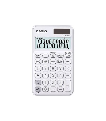 Der CASIO SL-310UC Taschenrechner weiß – unverzichtbar an jedem ArbeitsplatzVereinfachen Sie sich den Büroalltag mit dem CASIO SL-310UC Taschenrechner weiß. Das praktische Gerät können Sie perfekt an Ihrem Arbeitsplatz platzieren, um es immer parat zu haben.Effizienter 4-Tasten-SpeicherDas Gerät überzeugt durch sein übersichtliches LCD-Display (10-stellig). So haben Sie Ihre Zahlen immer im Blick. Mit dem 4-Tasten-Speicher können Sie Ergebnisse zwischenspeichern und bei Bedarf abrufen. Das erleichtert komplexe Berechnungen und steigert Ihre Effizienz im Arbeitsalltag.Solar- und batteriebetriebenDer Batterie- und Solarbetrieb sorgt dafür, dass das Produkt immer Strom hat, um Ihre Aufgaben zu lösen. Der Artikel verfügt zudem über eine automatische Stromabschaltung bei Nichtbenutzung.Mit ProzenttasteSie können mit der Prozenttaste Prozentsätze eines Wertes ausrechnen oder Prozentsätze zu einem Wert addieren oder davon abziehen. Folgende Funktionen bietet das Gerät außerdem: Steuerberechnung, Abschaltautomatik. Dank der Steuerberechnungsfunktion können Sie im Handumdrehen die fällige Steuer für einen gegebenen Betrag berechnen und ausweisen. Dieser Kauf lohnt sichDamit Sie sofort beginnen können, erhalten Sie die Lieferung des CASIO SL-310UC Taschenrechners weiß inklusive 1 Knopfzelle LR54, Schutztasche. ...